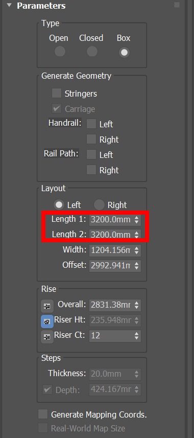 4)계단의 길이를 설정하려면 Length 1, Length 2 수치를 입력합니다.