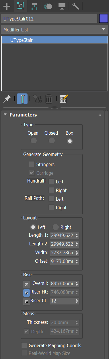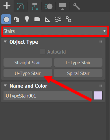 1)Create의 Geometry에서 Stairs의 U-Type Stair를 선택합니다.