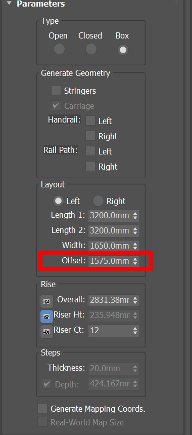 6)계단의 사이 간격을 설정하려면 Offset 수치를 입력합니다.