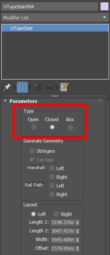 3)U-Type Stair 오브젝트의 파라미터를 확인합니다.