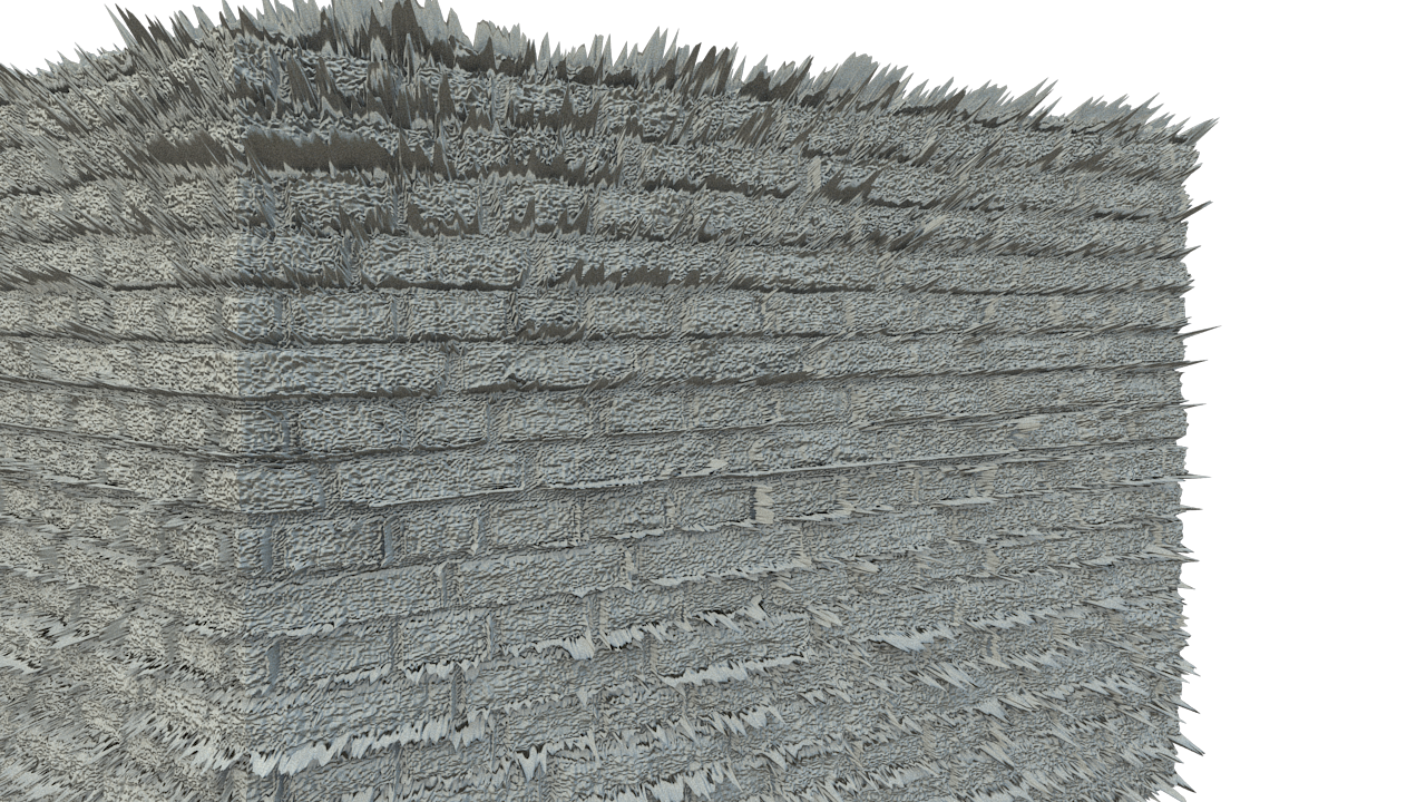 VrayDisplacementMod를 사용하여 렌더링한 결과 노이즈를 확인할수있습니다.