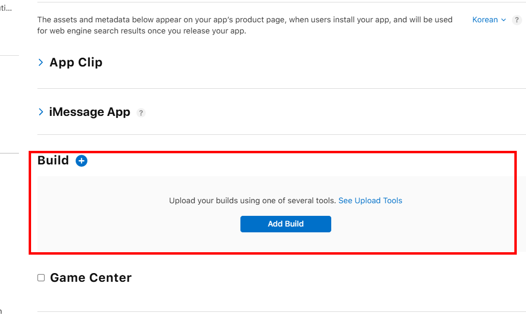 5)제출할 앱에 대하여 필요한 정보를 입력하고 새로운 빌드를 추가합니다.