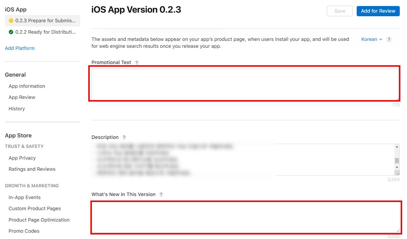 | App Store Connect에서 iOS 앱 배포 - 지역화(Localization) 언어 추가하기(앱 이름, 부제, 홍보 문구, 설명, 키워드등) (0) | 2025.02.24 |