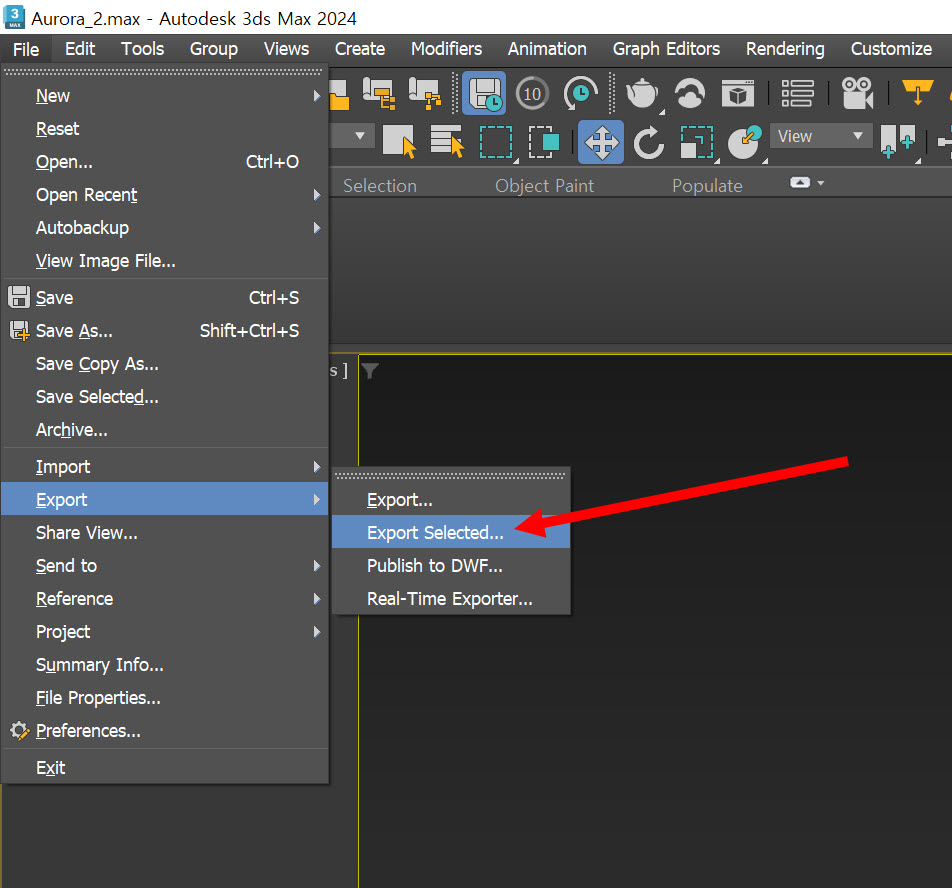 11)모델을 선택하고 export의 export selected를 선택합니다.