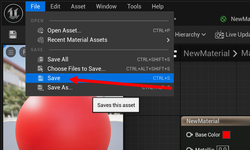 10)재질을 저장하려면 재질 편집기의 상단 file 메뉴에서 save를 선택합니다.