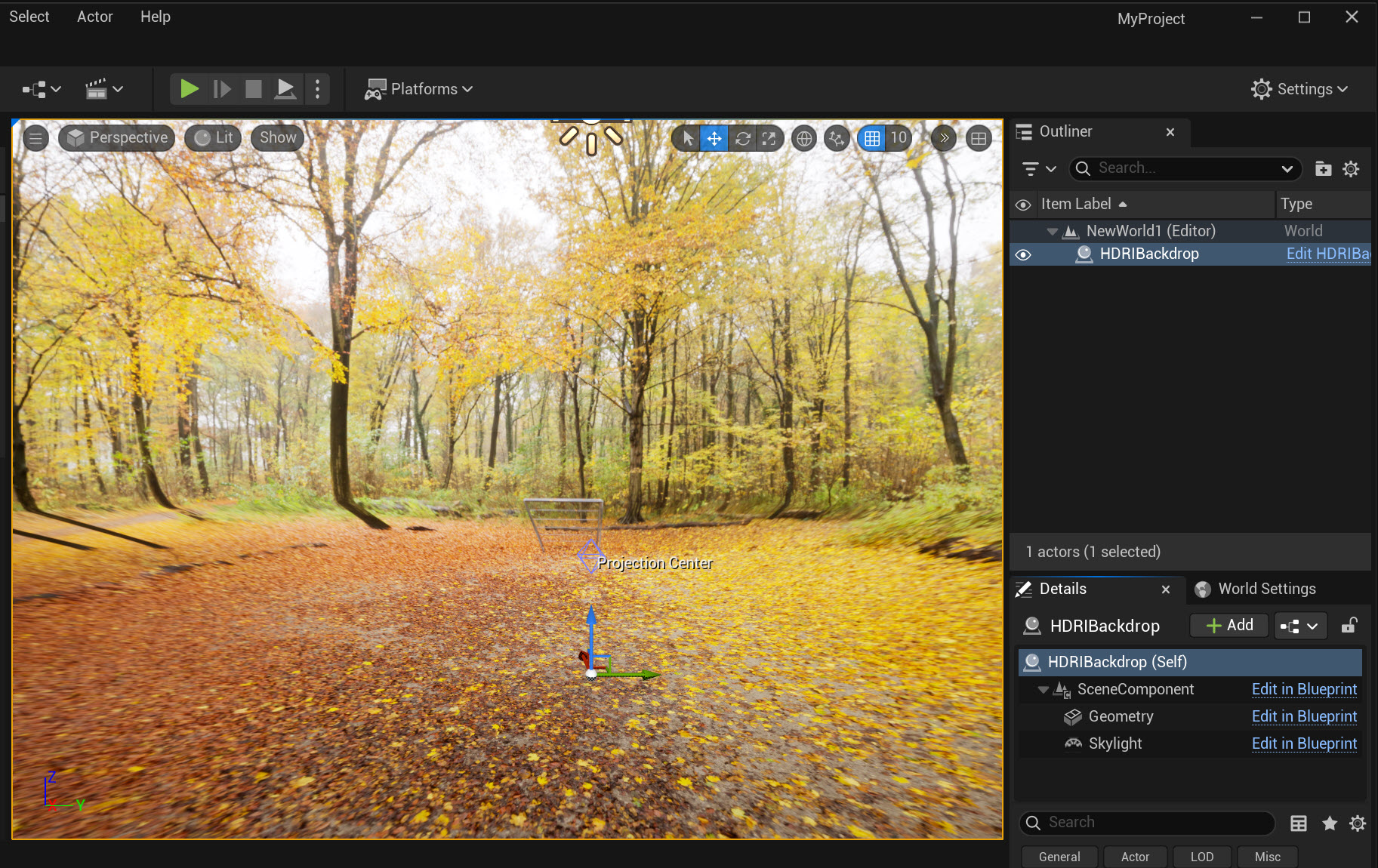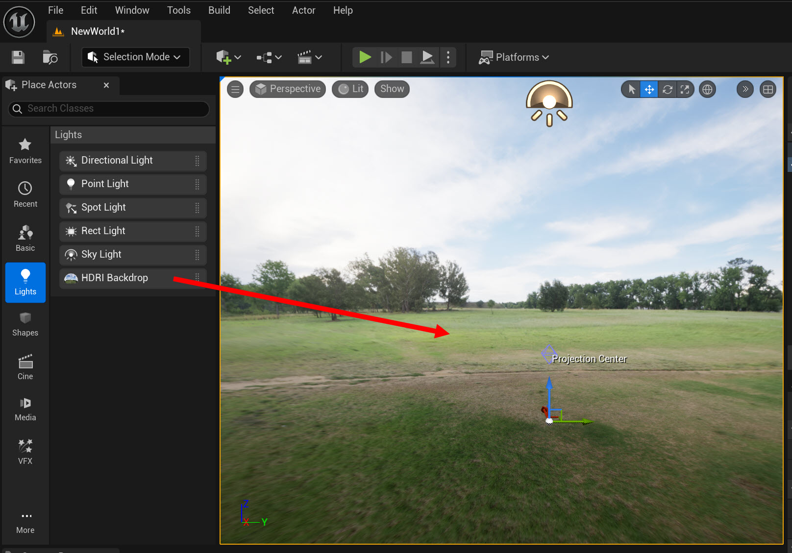 2)Place Actors의 조명(Lights)에서 HDRI Backdrop를 확인할수있습니다.