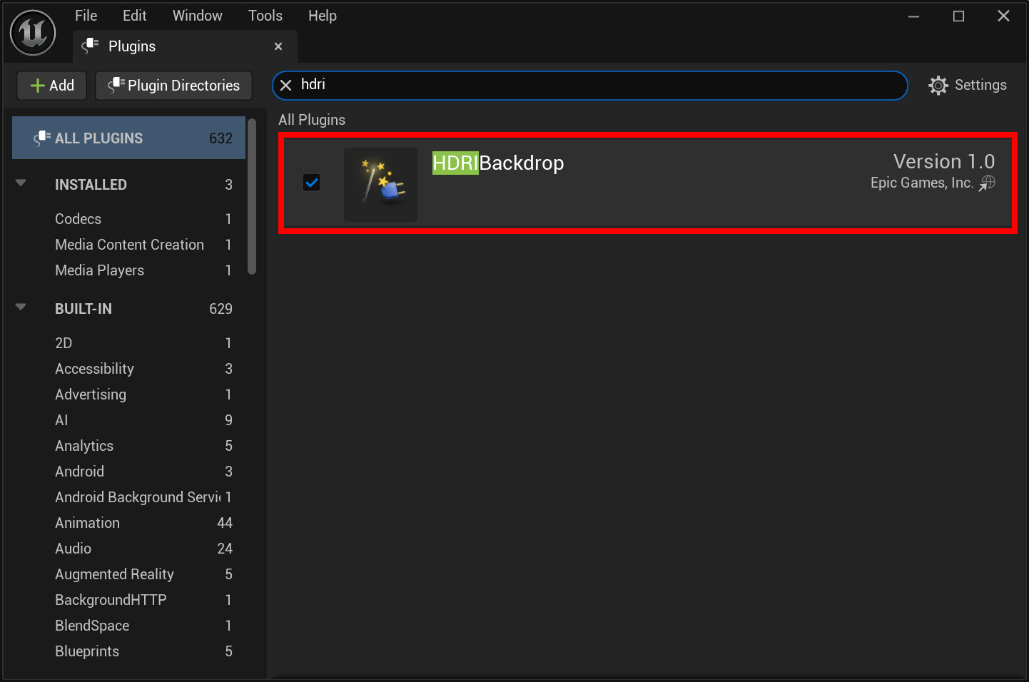 1)HDRI Backdrop 플러그인을 활성화합니다.