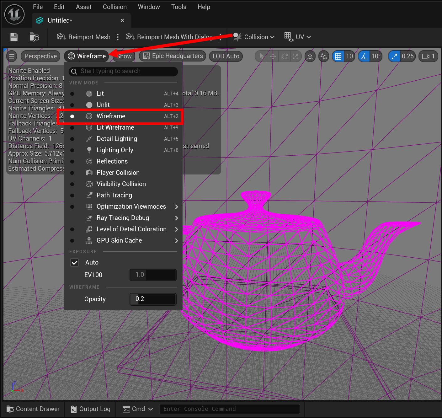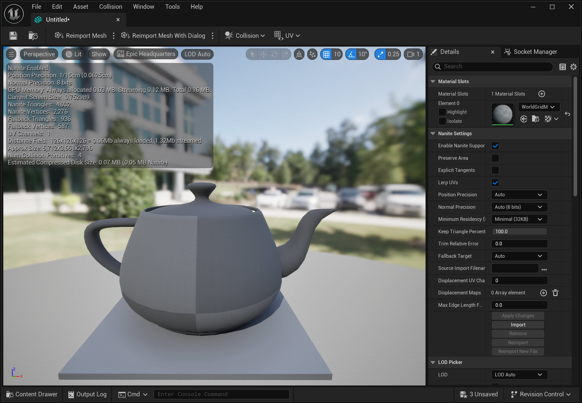 1)콘텐츠 브라우저에서 3D 모델의 정적 메시 편집기(Static Mesh Editor)로 이동합니다.