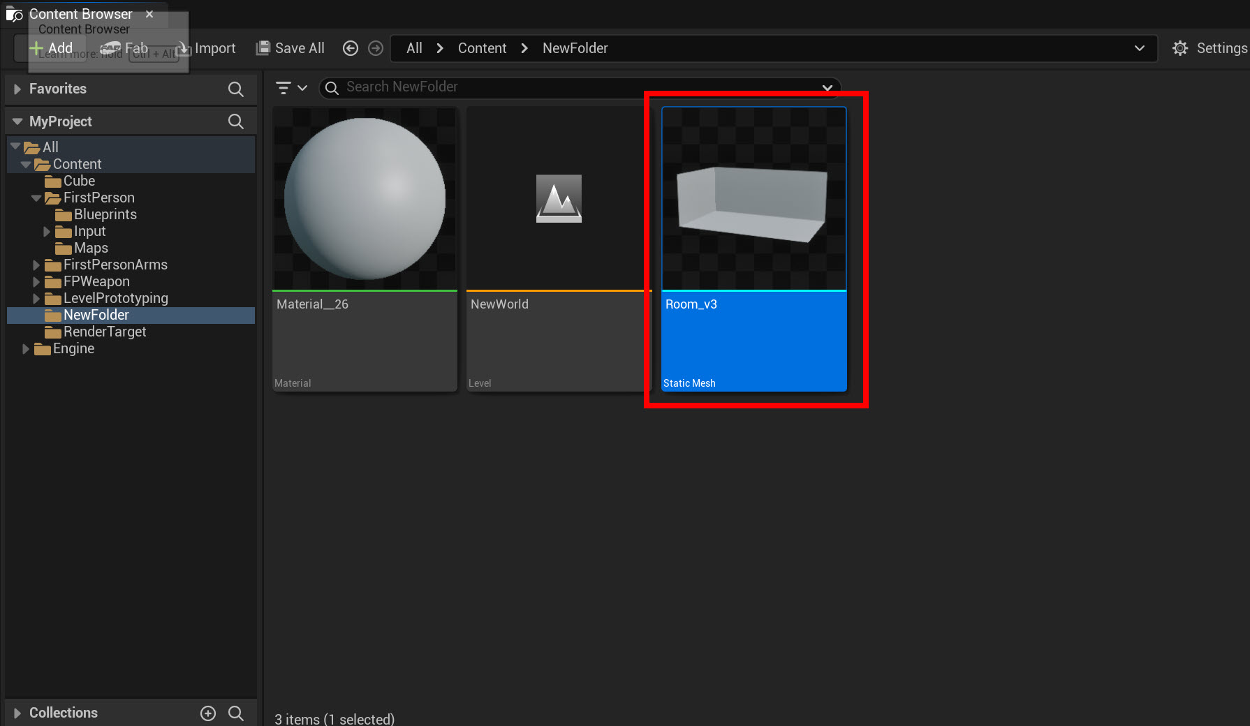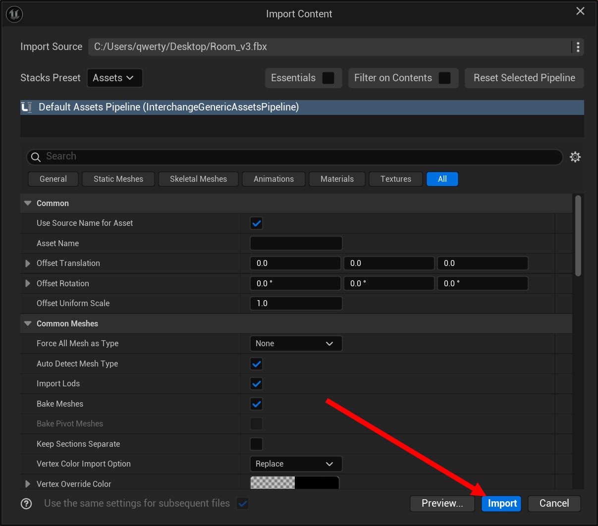 언리얼 엔진(Unreal Engine) 1인칭 플레이어 설정, 3D 모델 가져오기, 메시 콜리전 설정