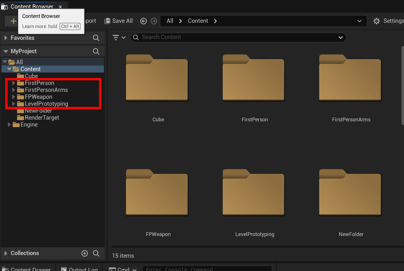 18)콘텐츠 브라우저에서 템플릿 및 콘텐츠가 정상적으로 추가된것을 확인할수있습니다.