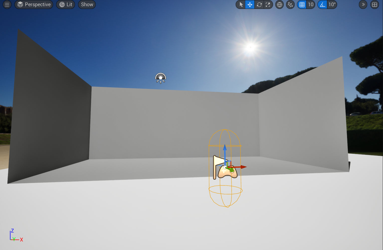 7)플레이어 액터의 위치 및 회전을 설정합니다.