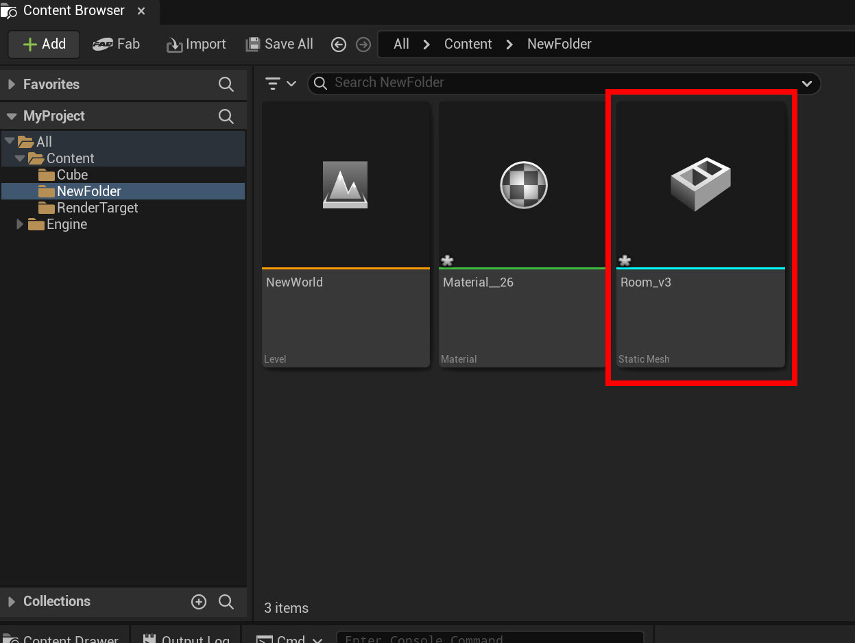 5)가져오기한 3D 모델을 레벨에 추가합니다.