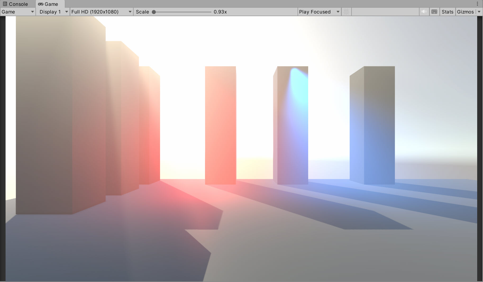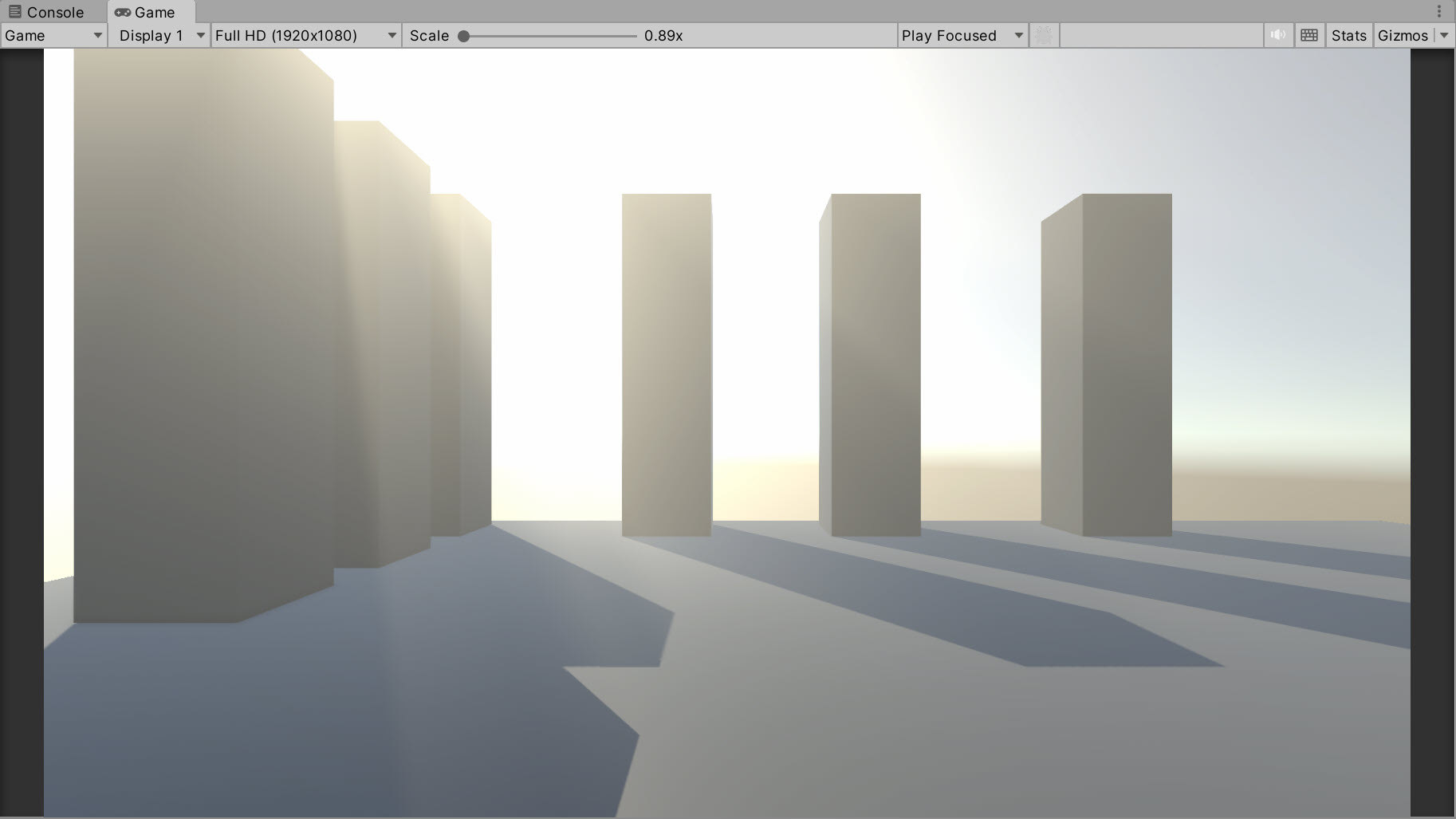 8)조명의 세기 또는 방향을 설정하여 Volumetric Fog 효과를 확인합니다.