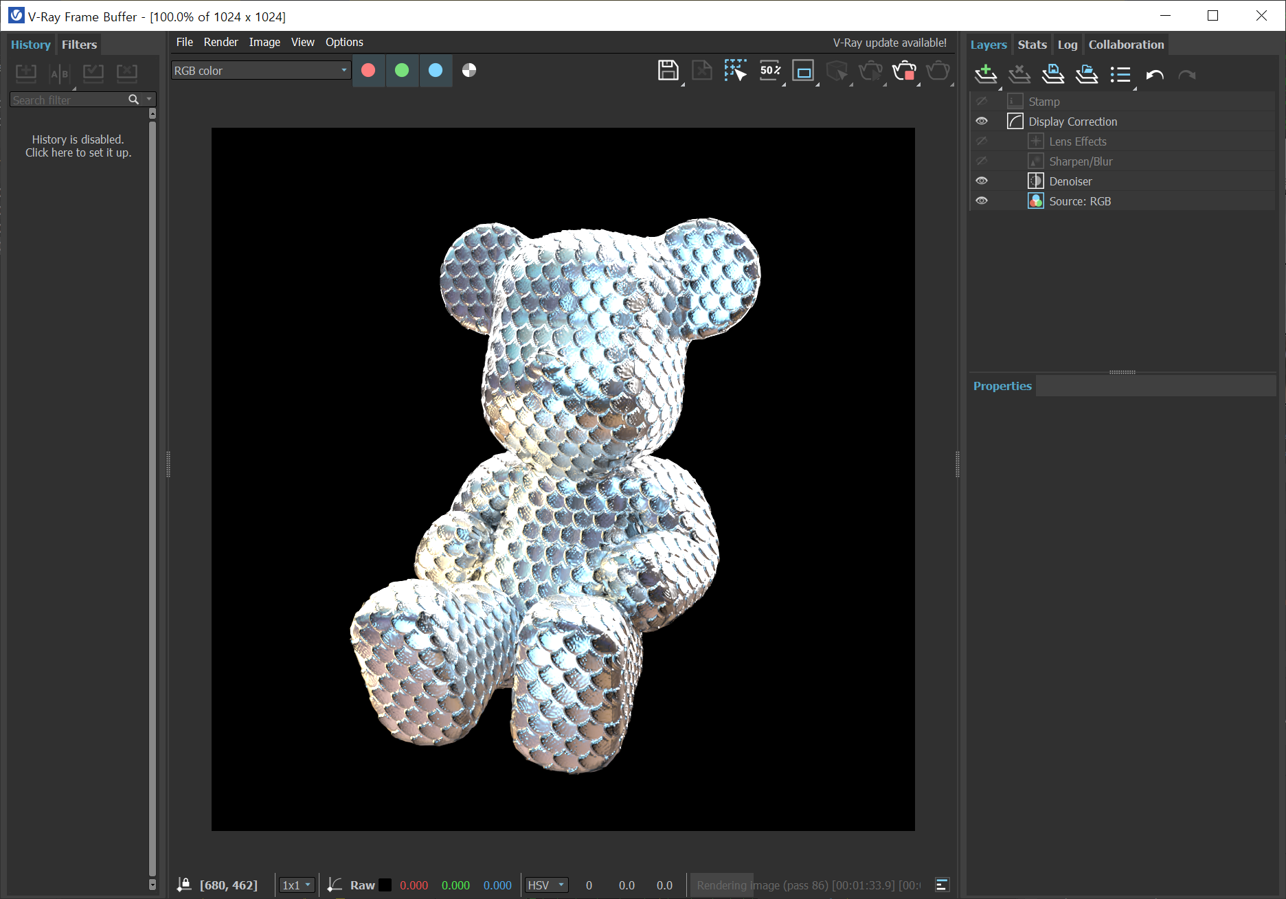1)브이레이 프레임 버퍼(V-Ray Frame Buffer)에서 렌더링한 이미지를 확인합니다.
