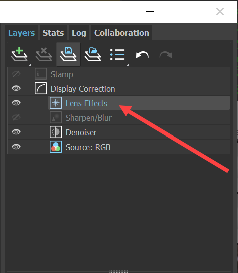 3)렌즈 효과를 사용하려면 Display Correction의 Lens Effects를 활성화합니다.
