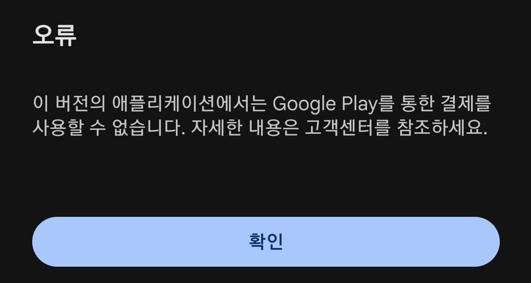 이 버전의 애플리케이션에서는 Google Play를 통한 결제를 사용할수없습니다. 자세한 내용은 고객센터를 참조하세요.