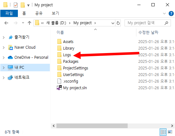 Unity가 실행되는 동안 발생하는 로그 파일을 저장하는 폴더입니다. 로그 파일에는 에디터에서 발생한 오류, 콘솔 로그, 디버그등에 대한 정보가 포함됩니다.