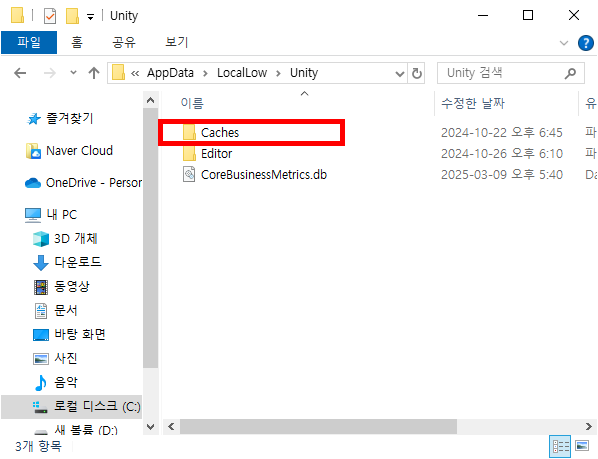 C:\Users\<사용자이름>\AppData\LocalLow\Unity\Caches