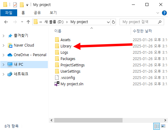 에디터의 성능 최적화 및 패키지 관리에 필요한 데이터를 저장. 폴더를 삭제하면 에디터를 새로 열기할때 Unity가 필요한 데이터들을 다시 생성