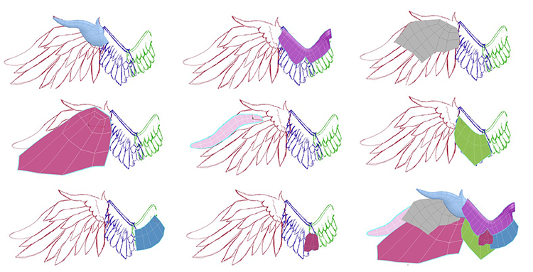 3ds studio max wings design and creation process overview: Step 1 design: Create sketches based on character anatomy and animation; figure out wings mechanics and movement. Step 2 Modeling process;…