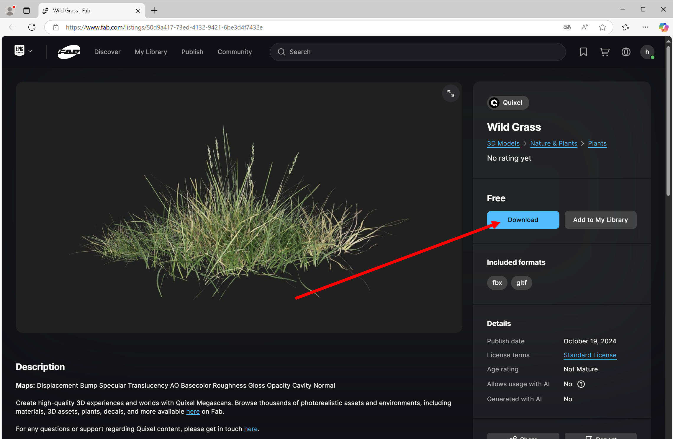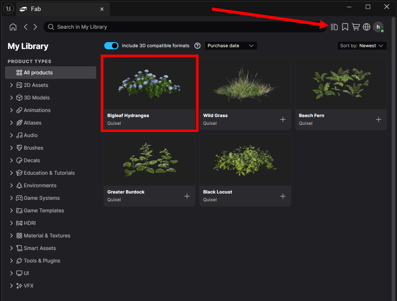 언리얼 엔진(Unreal Engine) Fab에서 퀵셀 메가스캔(Quixel Megascan) 에셋 추가하기