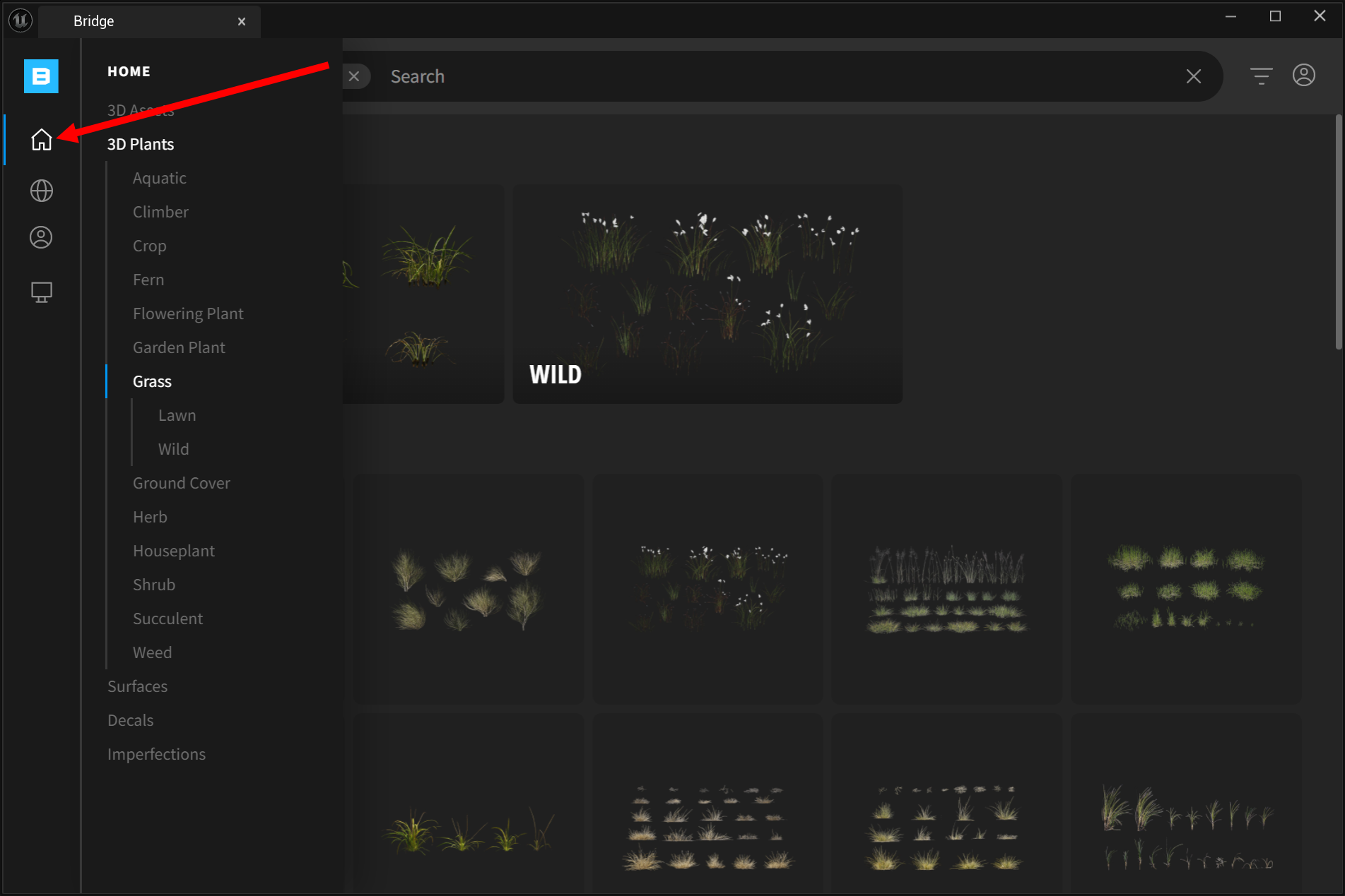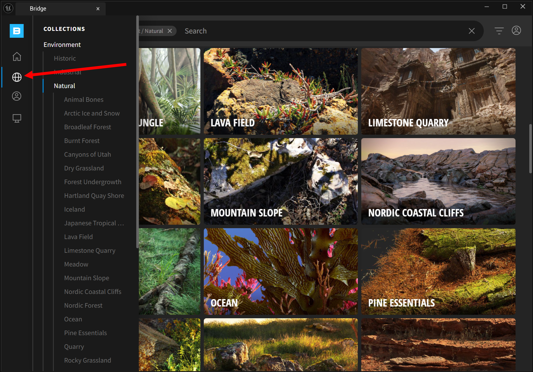 4)Bridge를 열기하며 퀵셀(quixel)에서 제공하는 콘텐츠를 표시합니다