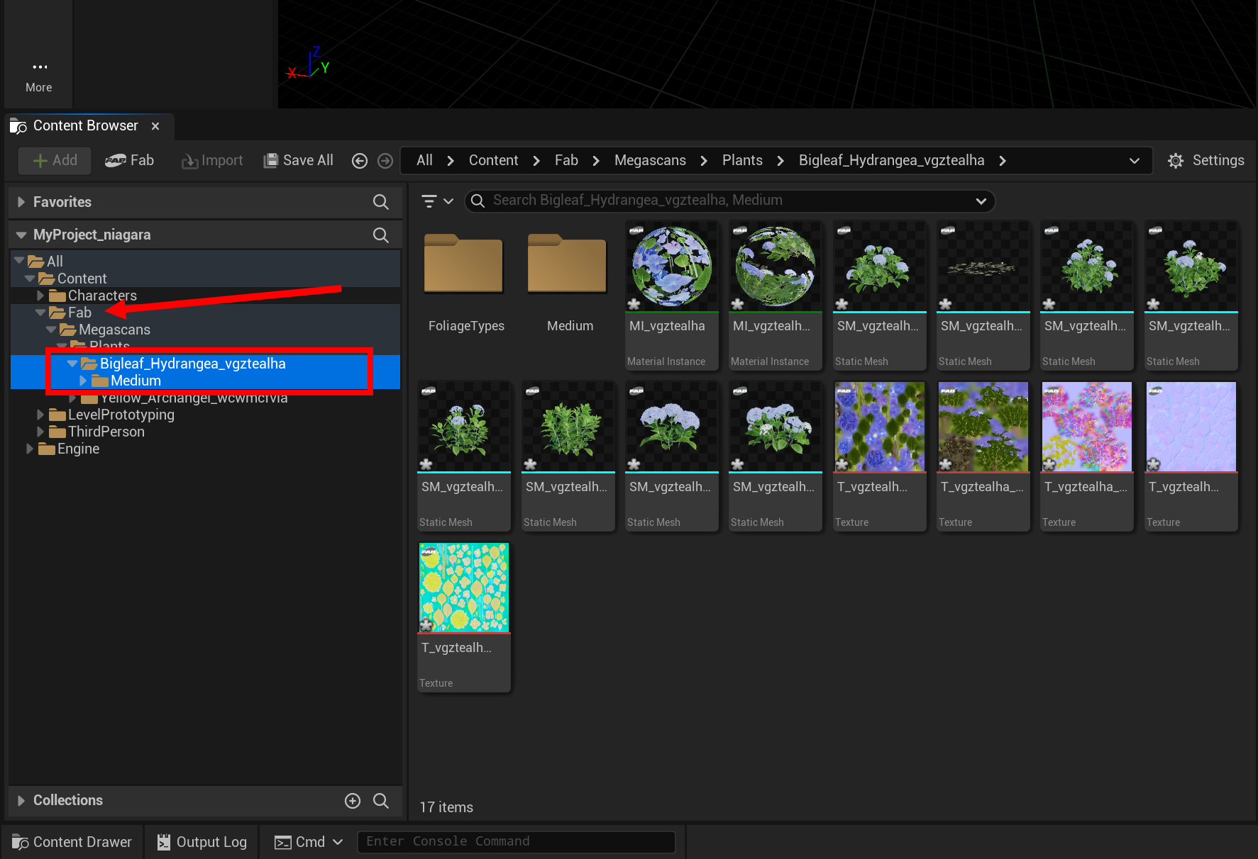 17)콘텐츠 브라우저의 Fab 폴더에서 프로젝트에 추가한 에셋을 확인할수있습니다.