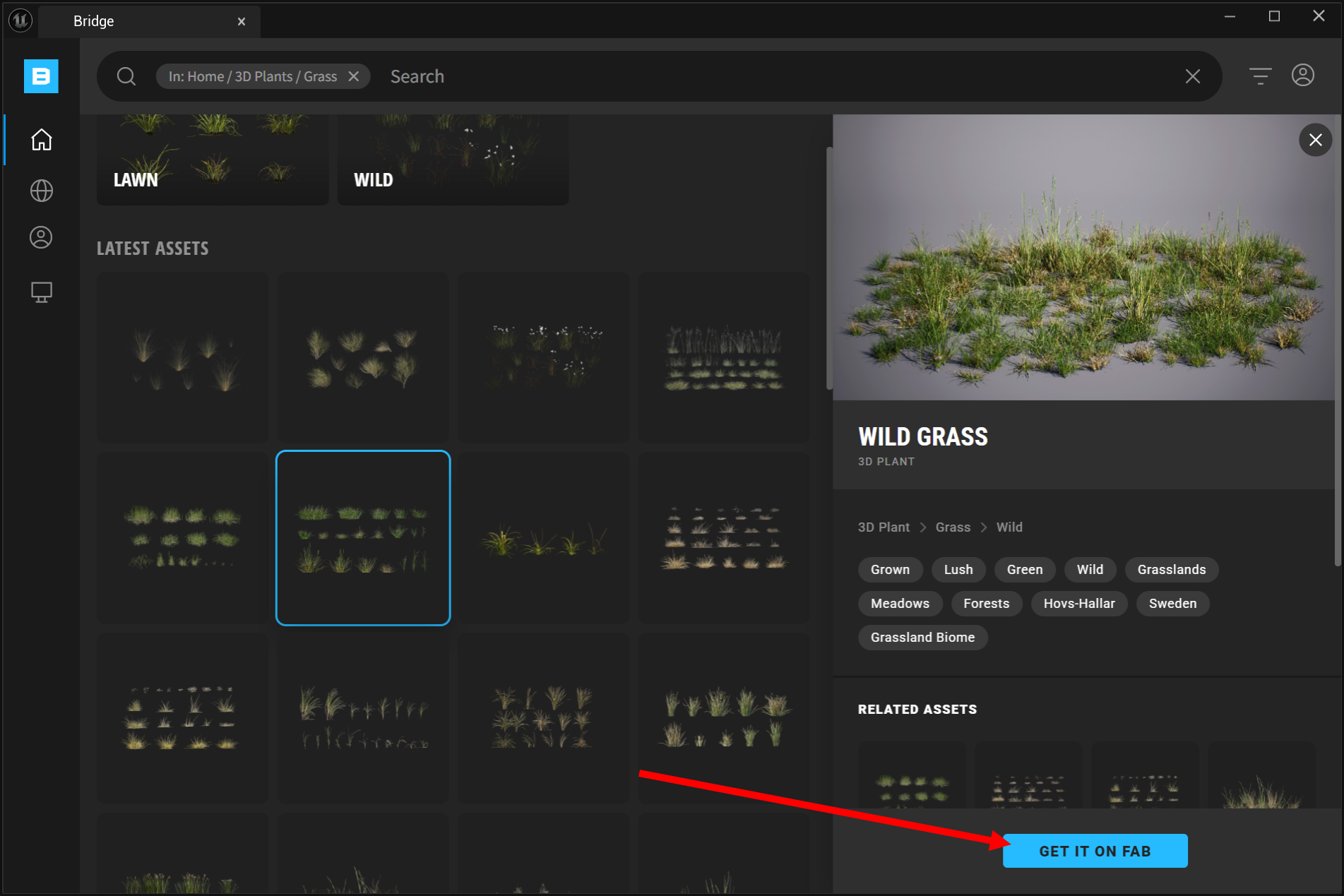 6)에셋을 선택하고 get it on fab을 클릭합니다.