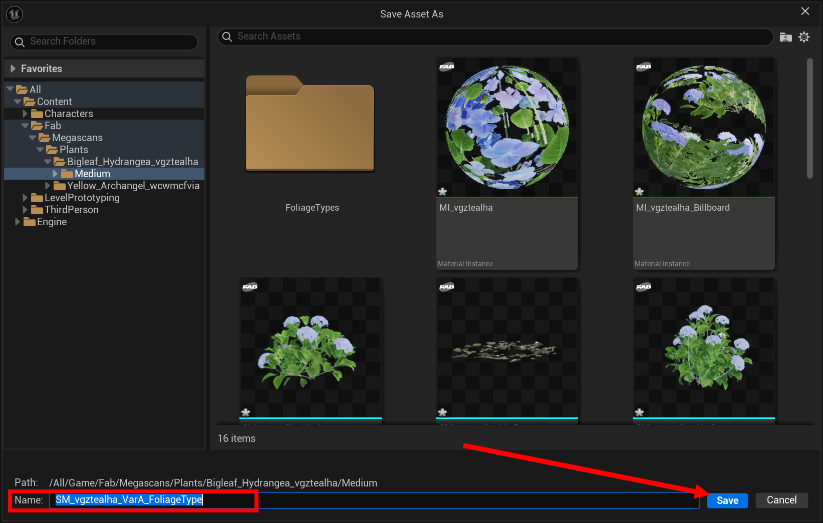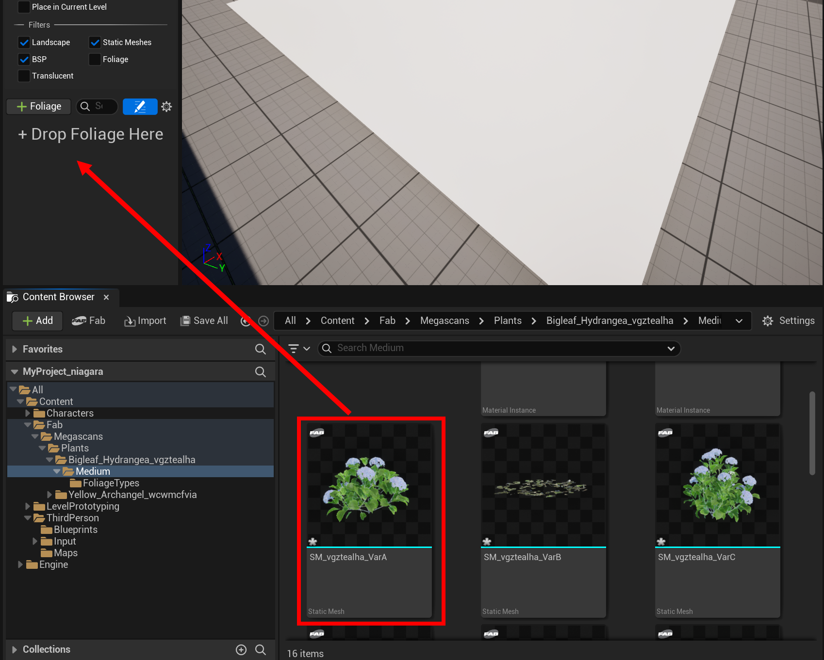 5)추가하는 정적 메시에 대한 정적 메시 폴리지(Static Mesh Foliage)를 생성합니다.
