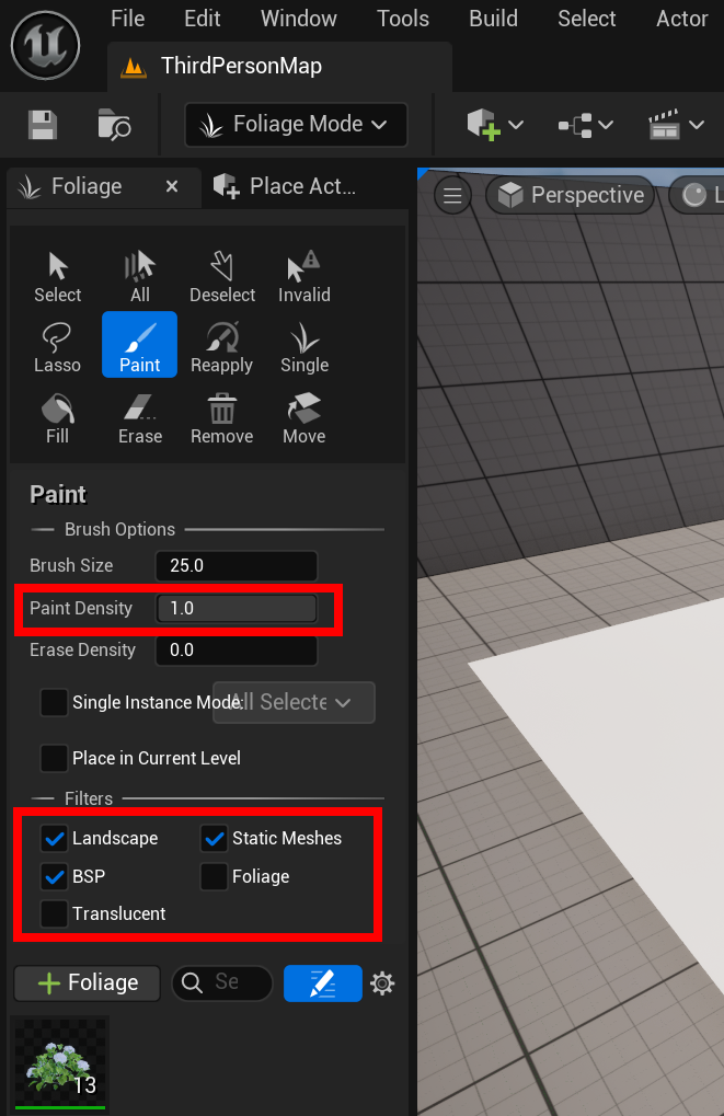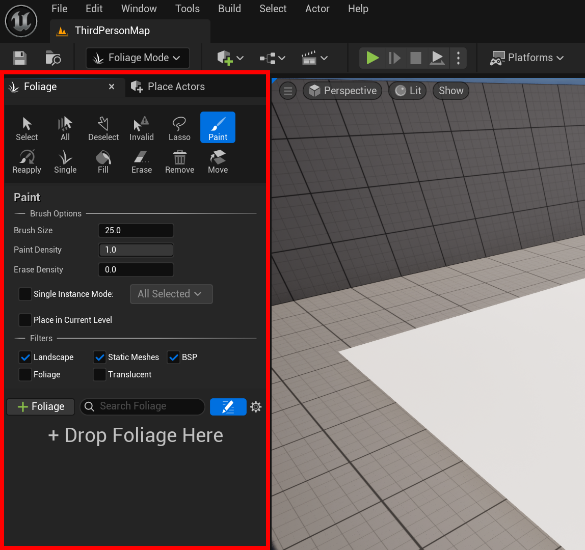언리얼 엔진(Unreal Engine) Foliage 모드를 사용하여 지오메트리 표면에 잔디(Grass) 추가하기
