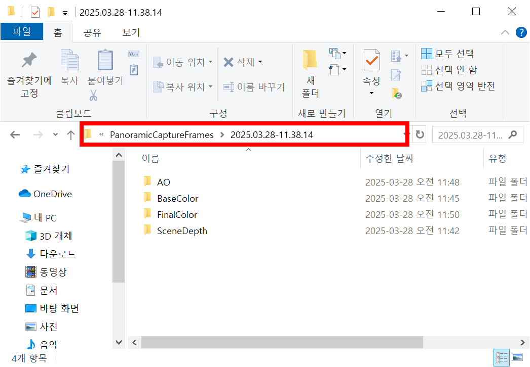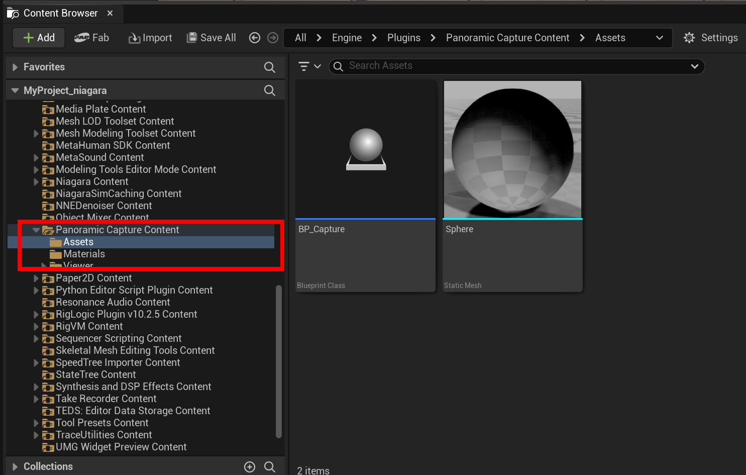 3)Panoramic Capture 콘텐츠의 에셋(Assets) 폴더를 확인합니다.