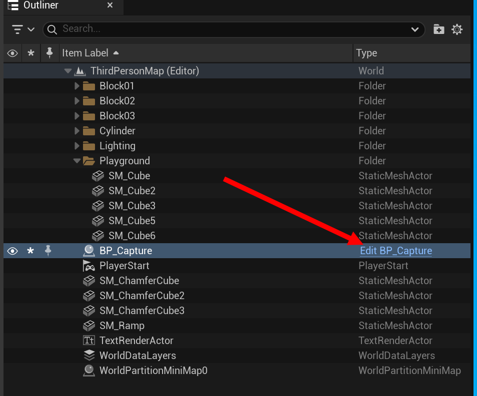 4)BP_Capture 액터를 레벨에 추가합니다.
