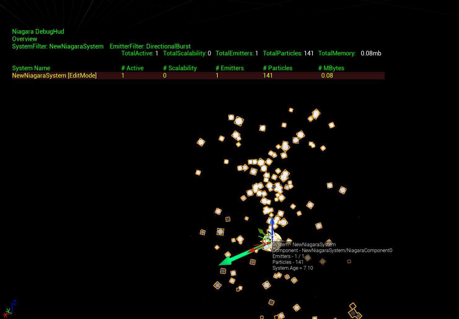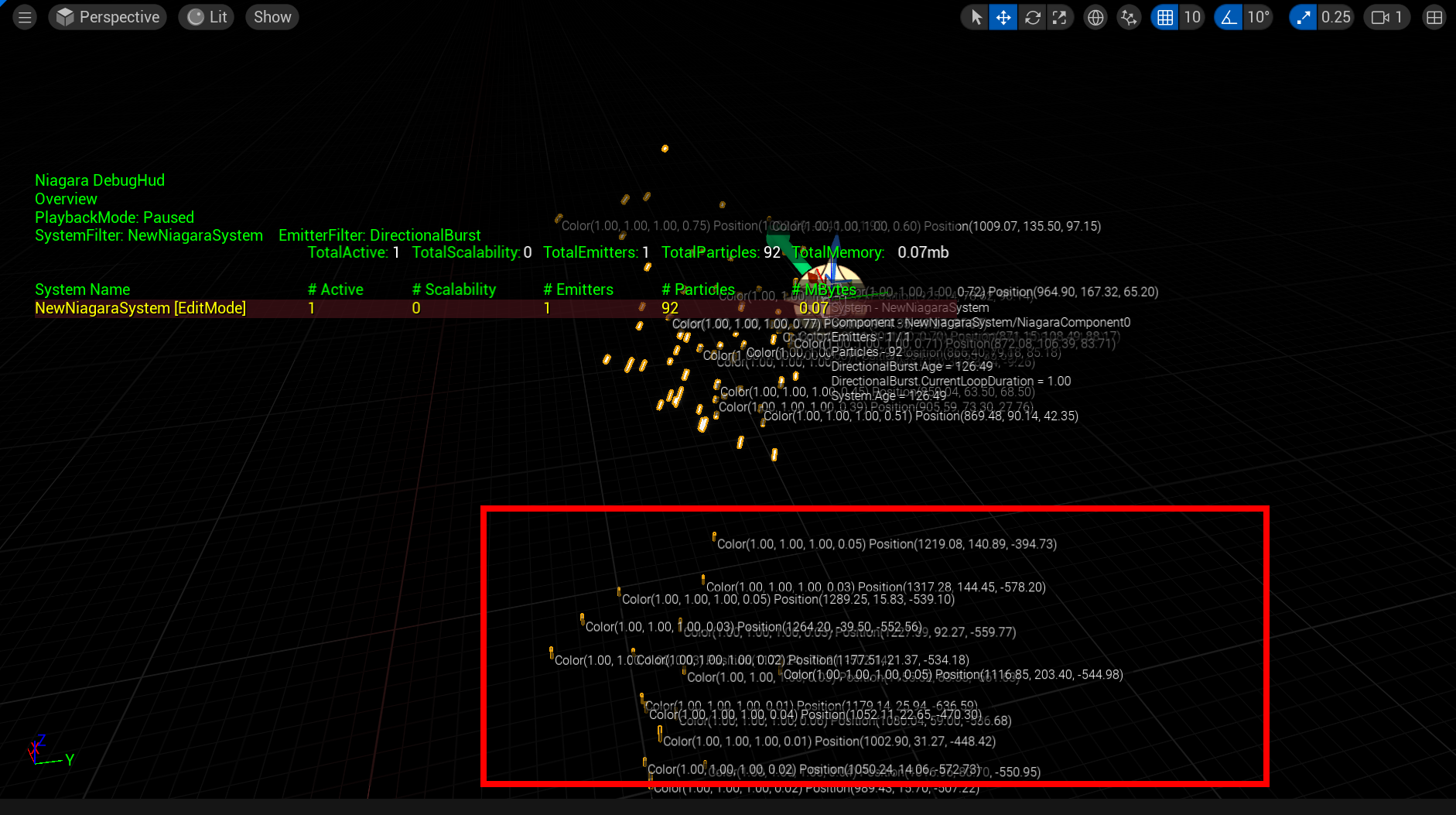 언리얼 엔진(Unreal Engine) 뷰포트에서 나이아가라 파티클 정보 표시(HUD) 및 디버그