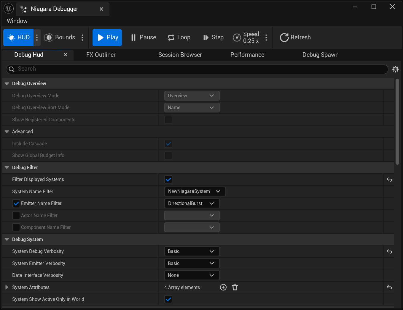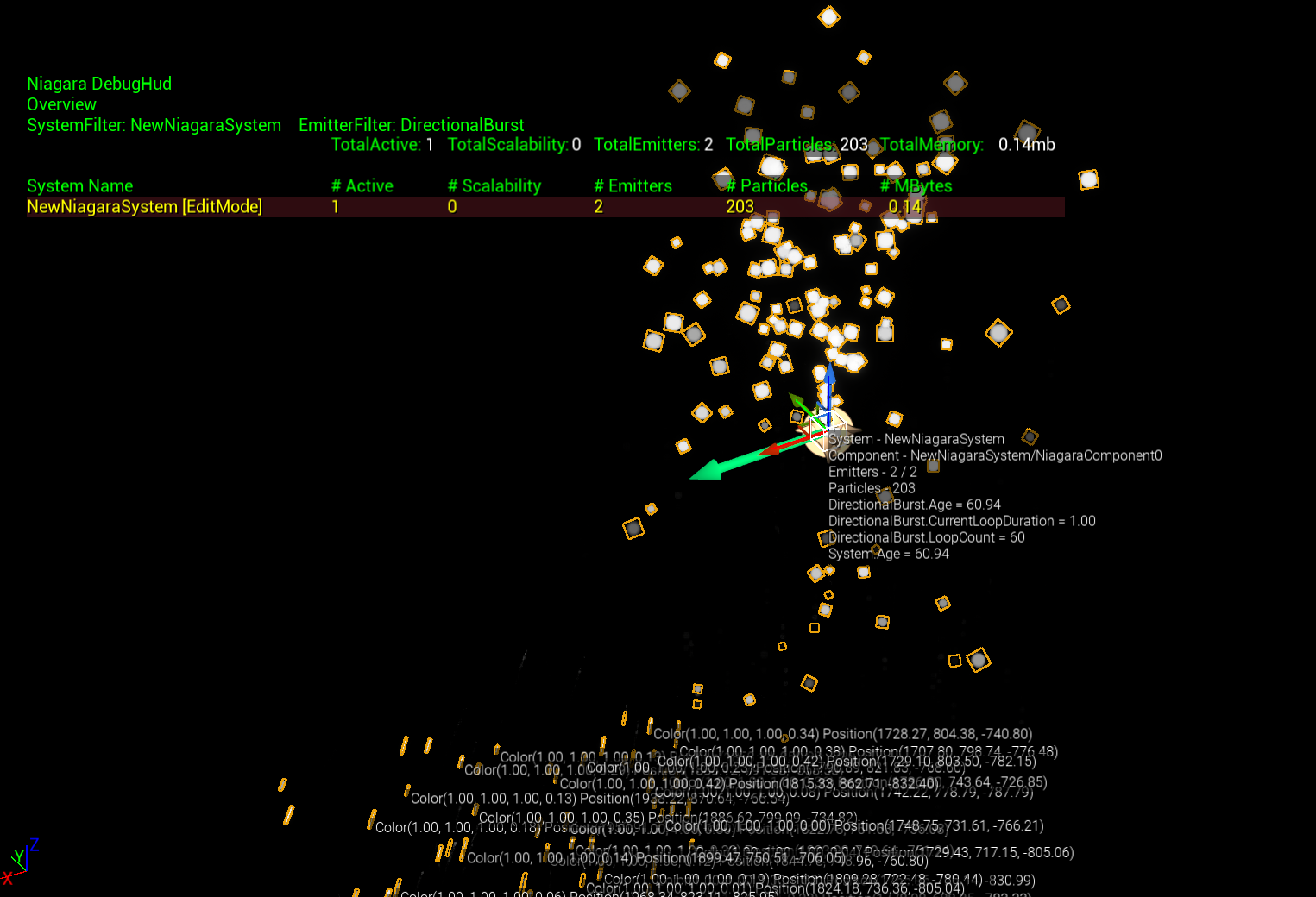 나이아가라 디버거(niagara debugger)를 사용하여 시뮬레이션하는 나이아가라 시스템의 에미터 및 파티클 정보를 표시하고 디버그할수있습니다.