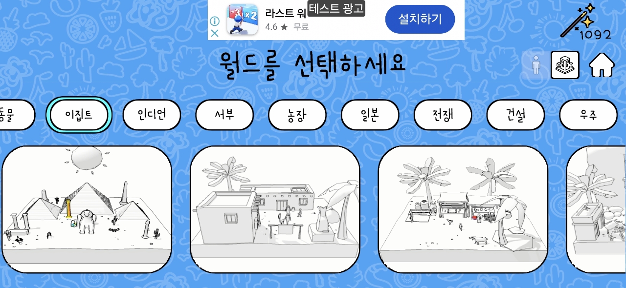 (음식, 인테리어, 해변, 공룡, 동물, 이집트, 서부, 인디언, 농장, 건설, 전쟁, 일본, 우주 좀비, 판타지, 겨울)