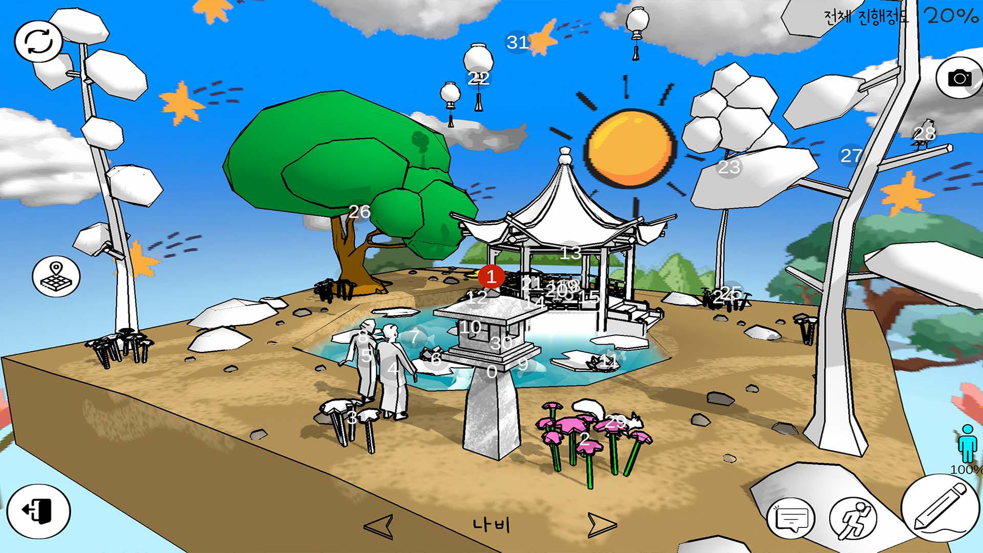 색칠을 완성하면 월드에 반영됩니다. 월드에 있는 오브젝트들을 하나 둘 색칠할때마다 월드가 다채로운 색으로 채워지고