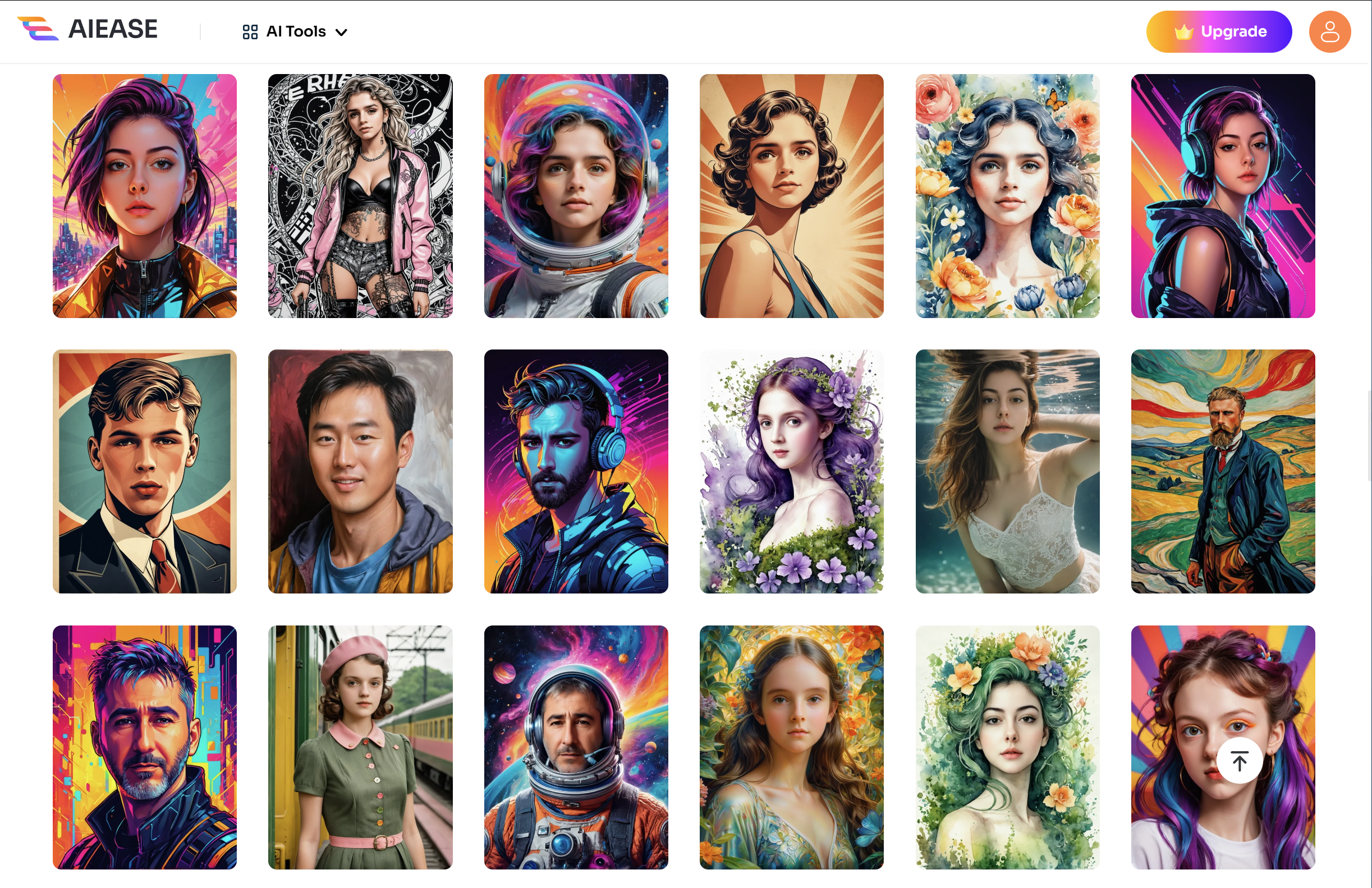 1)아래 AIEASE의 Headshot Generator 웹페이지로 이동하고 이미지 스타일을 선택합니다.