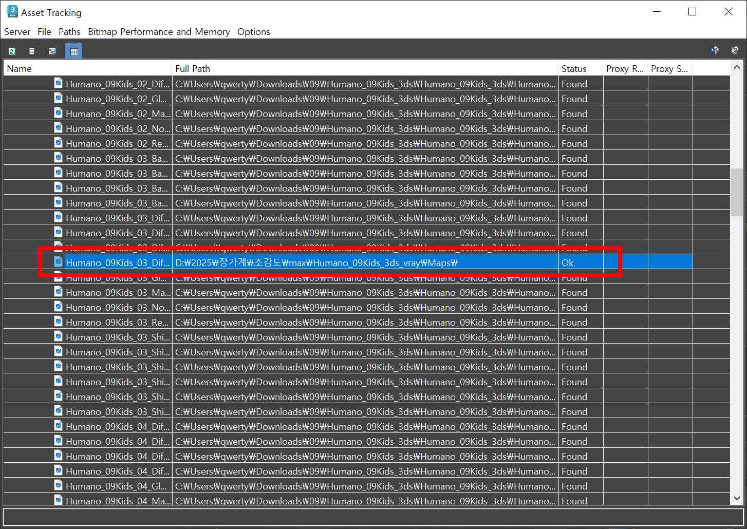 3D 맥스(Max) Asset Tracking에서 에셋 상태가 found 인 경우 경로 재설정
