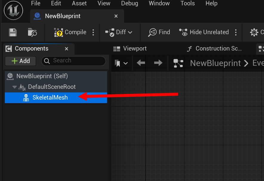 4)액터에 skeletal mesh 컨포넌트를 추가합니다.