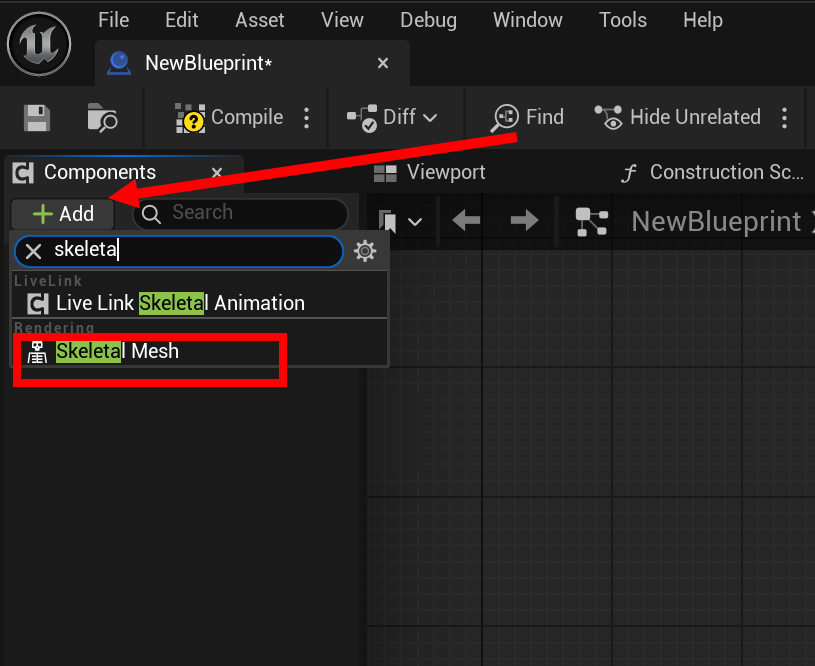 4)액터에 skeletal mesh 컨포넌트를 추가합니다.