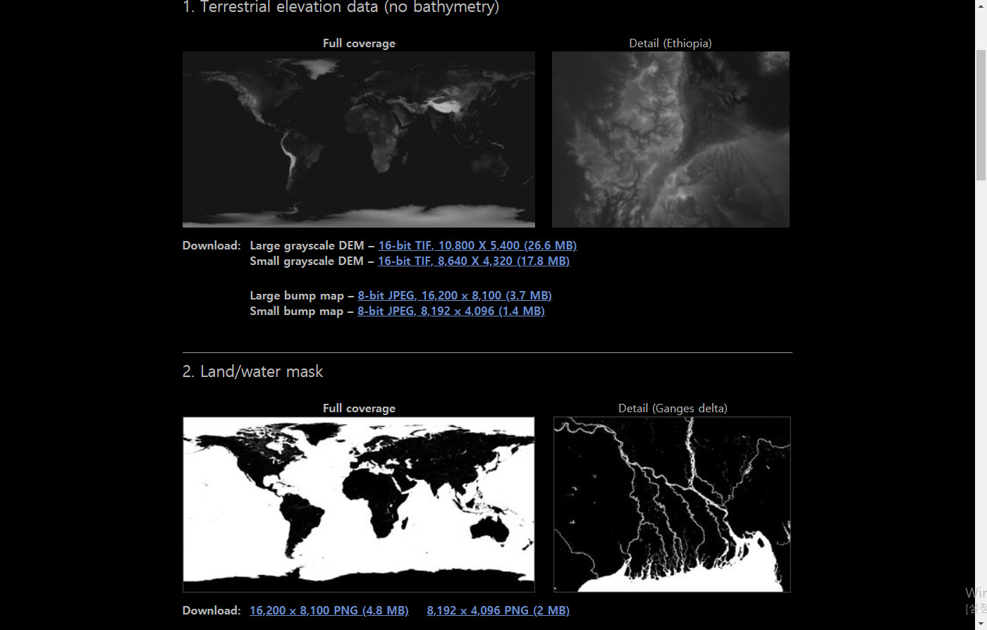 일러스트, 애니메이션 제작 등에 사용할수있는 지구 래스터 맵 데이터를 제공한다.