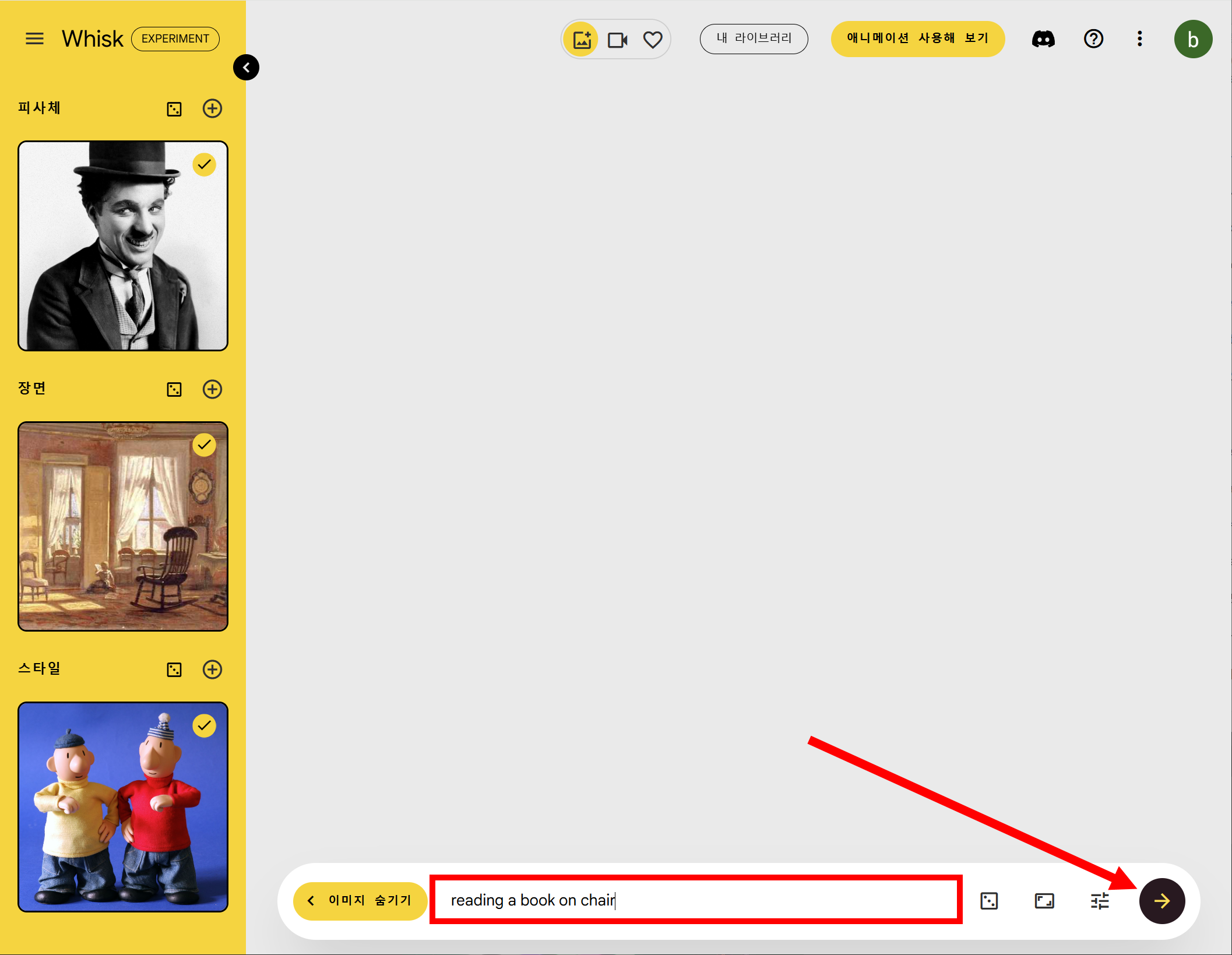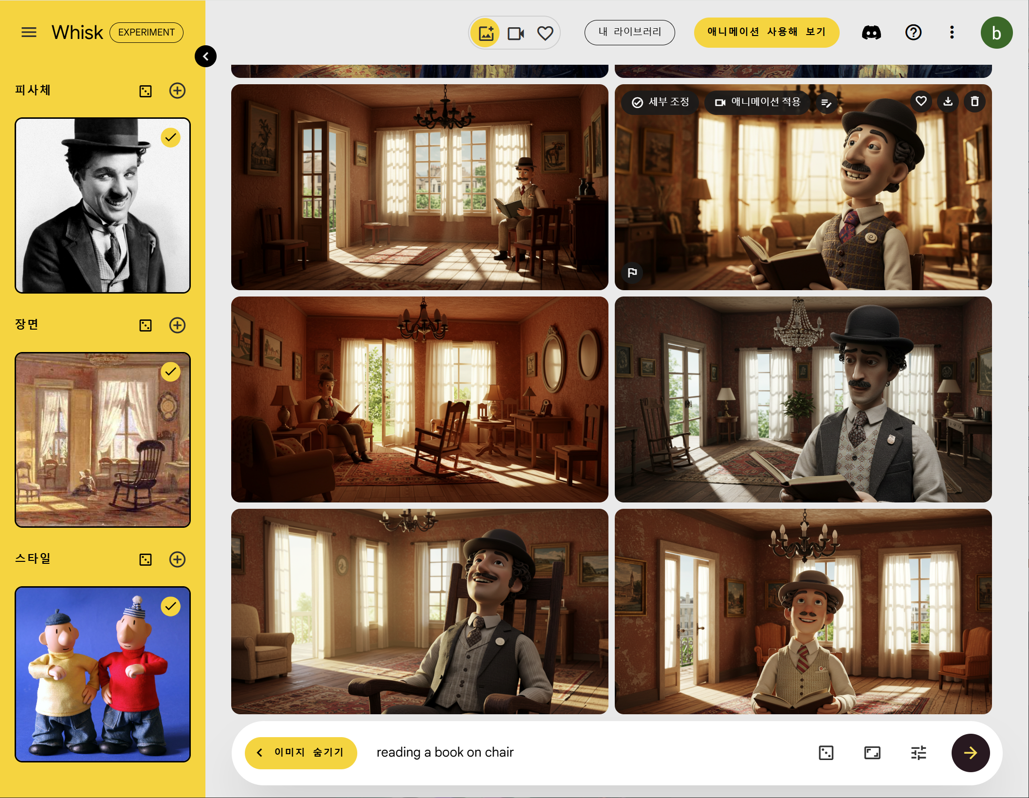 구글 위스크(Whisk AI) 프롬프트없이 쉽고 재미있는 방법으로 이미지 생성(피사체, 장면, 스타일 참고 이미지 기반)