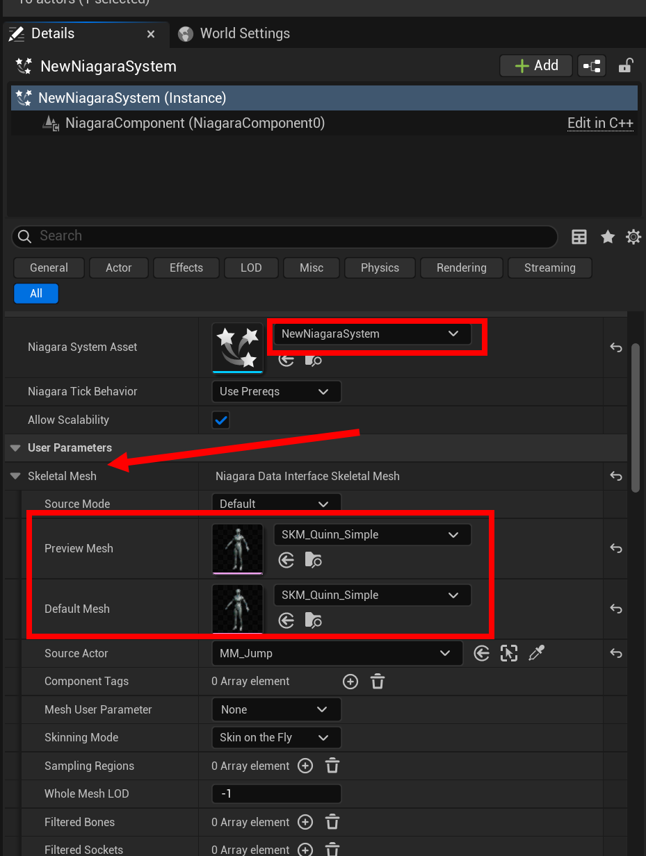 언리얼 엔진(Unreal Engine)에서 나이아가라 파티클 스켈레탈 메시(Skeletal Mesh) 방출 기본설정