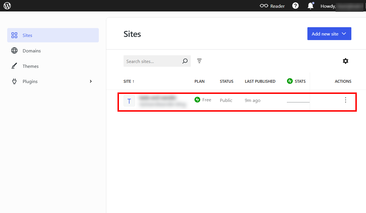 6)아래 워드프레스 홈페이지의 sites 페이지에서 워드프레스 계정과 사이트가 정상적으로 연결된것을 확인할수있습니다.