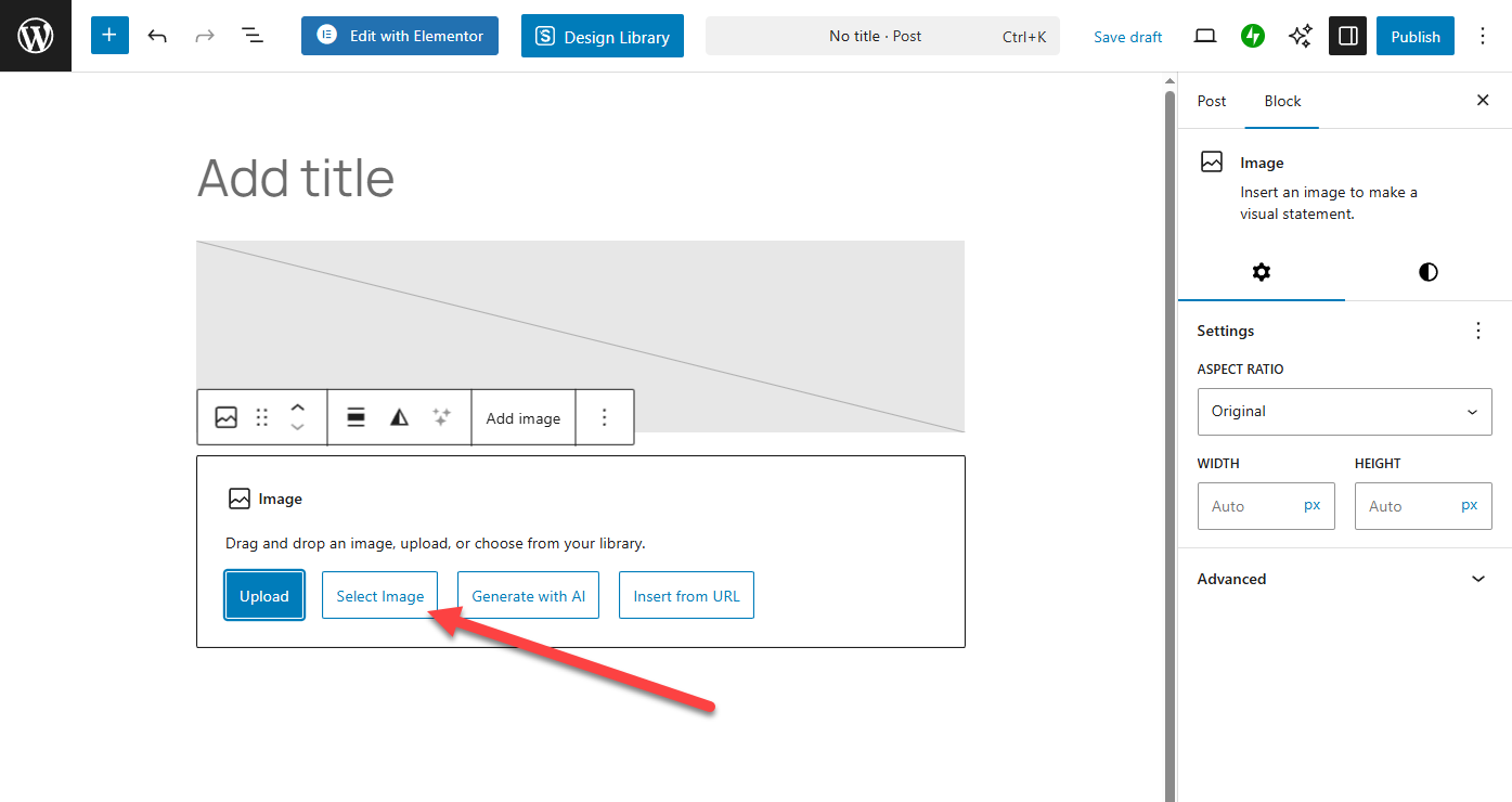 1)새로운 게시글 작성에서 add image의 select image를 선택합니다.