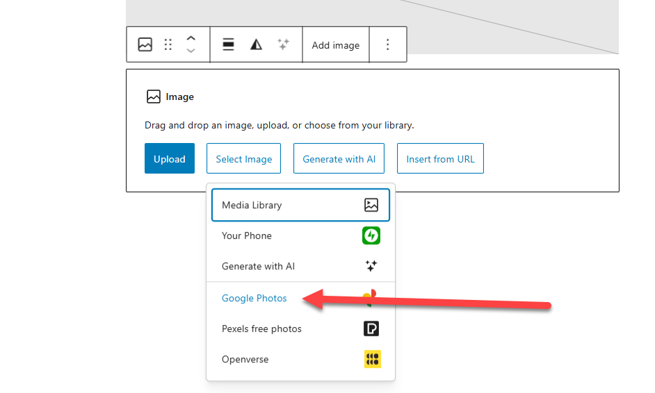 워드프레스 사이트에 Jetpack 플러그인을 설치하면 게시글 작성에서 구글 포토(Google Photos)의 이미지를 선택 및 업로드할수있습니다.