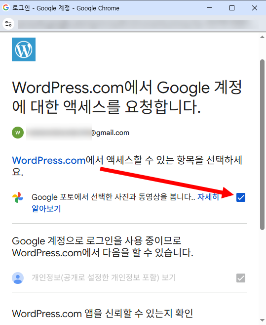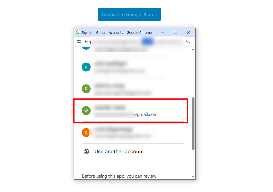 4)사이트에 연결할 구글 포토의 계정을 선택합니다.