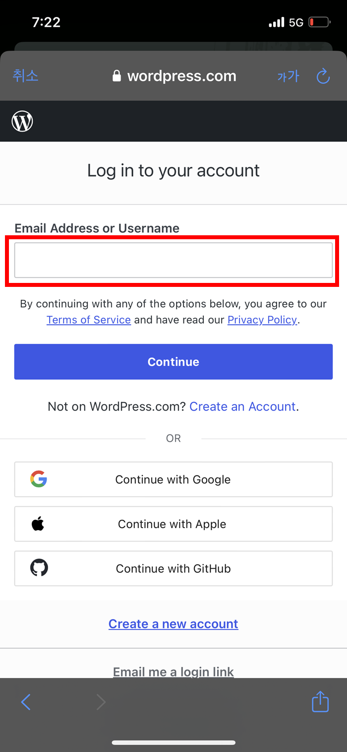 워드프레스 어플에서 사용자 로그인하고 웹사이트를 관리하려면 워드프레스 사용자 계정을 생성 및 비밀번호를 설정하고 워드프레스 사이트 연결을 진행해야합니다.