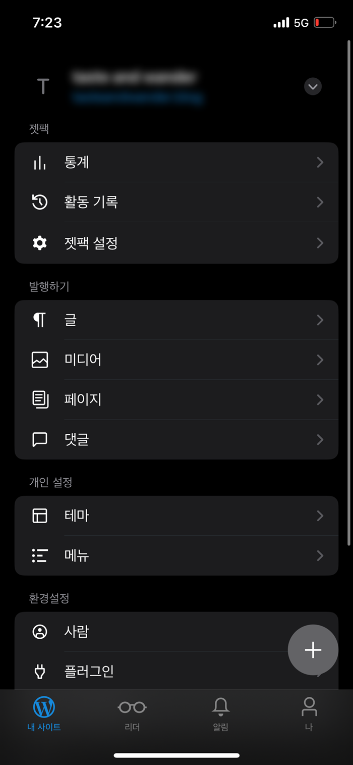 워드프레스 모바일 어플에서 정상적으로 로그인한것을 확인할수있습니다.