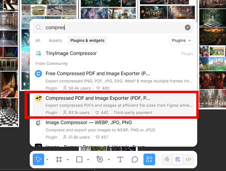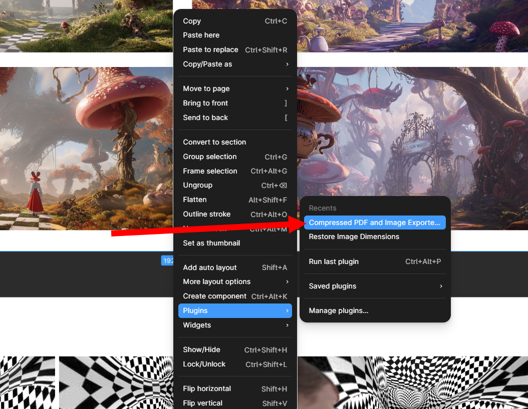 8)마우스 우클릭 메뉴에서 plugins의 compressed PDF and Image Exporter 플러그인을 실행합니다.